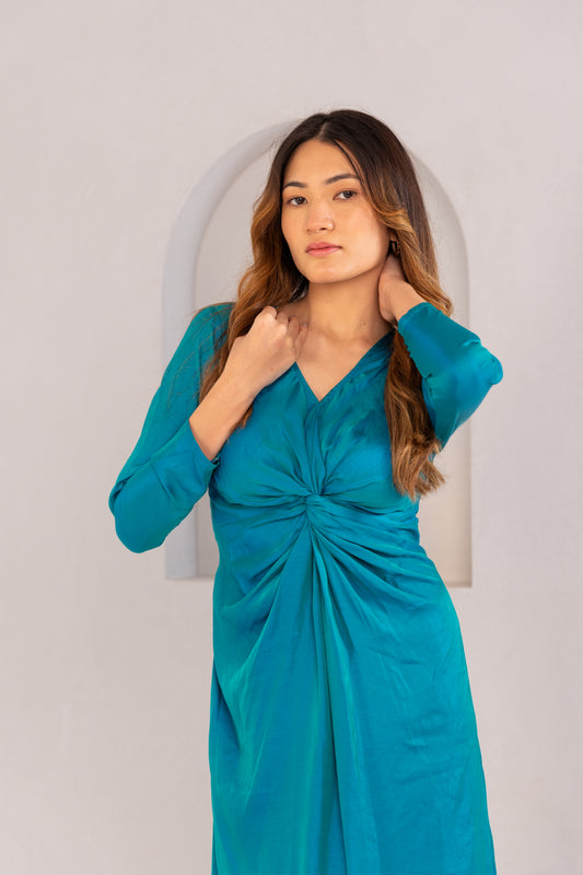 TWO TONE KNOT DRESS - ARGENTINAN BLUE