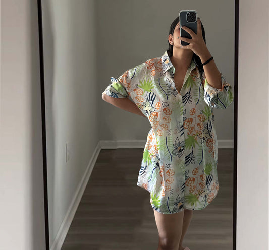 • SMOCKED SHORT DRESS - DARK FLORAL