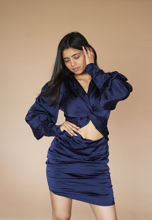 SATIN KNOT DRESS - NAVY BLUE