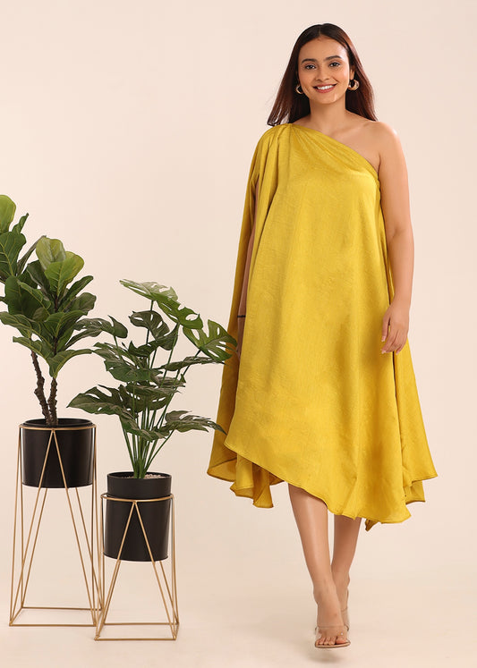 ONE SHOULDER TEXTURED DRESS - BRIGHT YELLOW