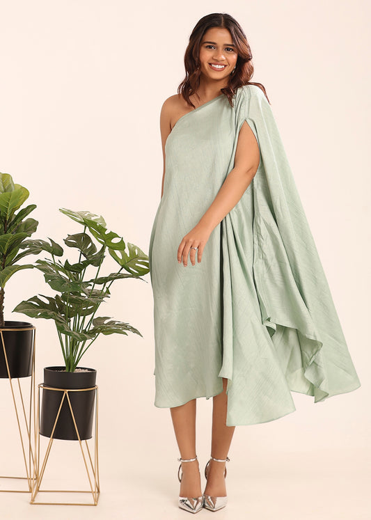 ONE SHOULDER TEXTURED DRESS - LIGHT PISTACHIO