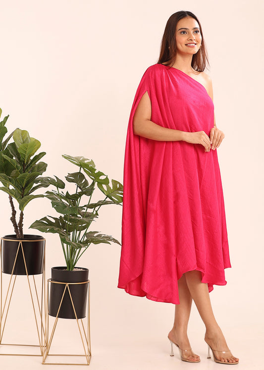 ONE SHOULDER TEXTURED DRESS - LIGHT RED