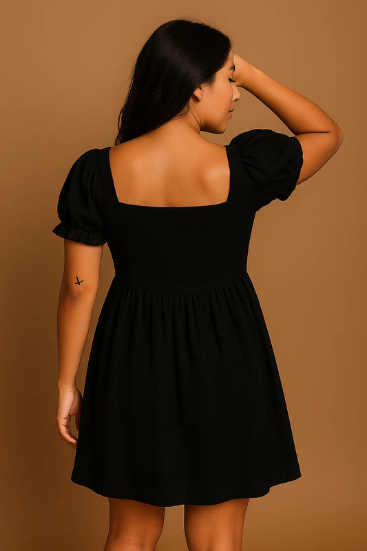 LINEN SHORT DRESS - BLACK