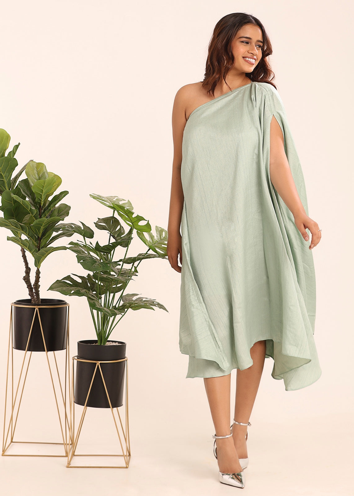 ONE SHOULDER TEXTURED DRESS - LIGHT PISTACHIO